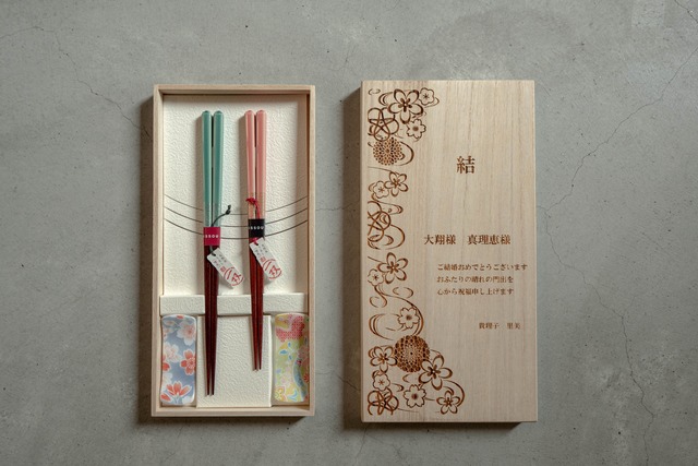箸置付夫婦箸 流彩 オーダー彫刻桐箱 一双 贈り物 母の日 父の日 プレゼント セット ペア