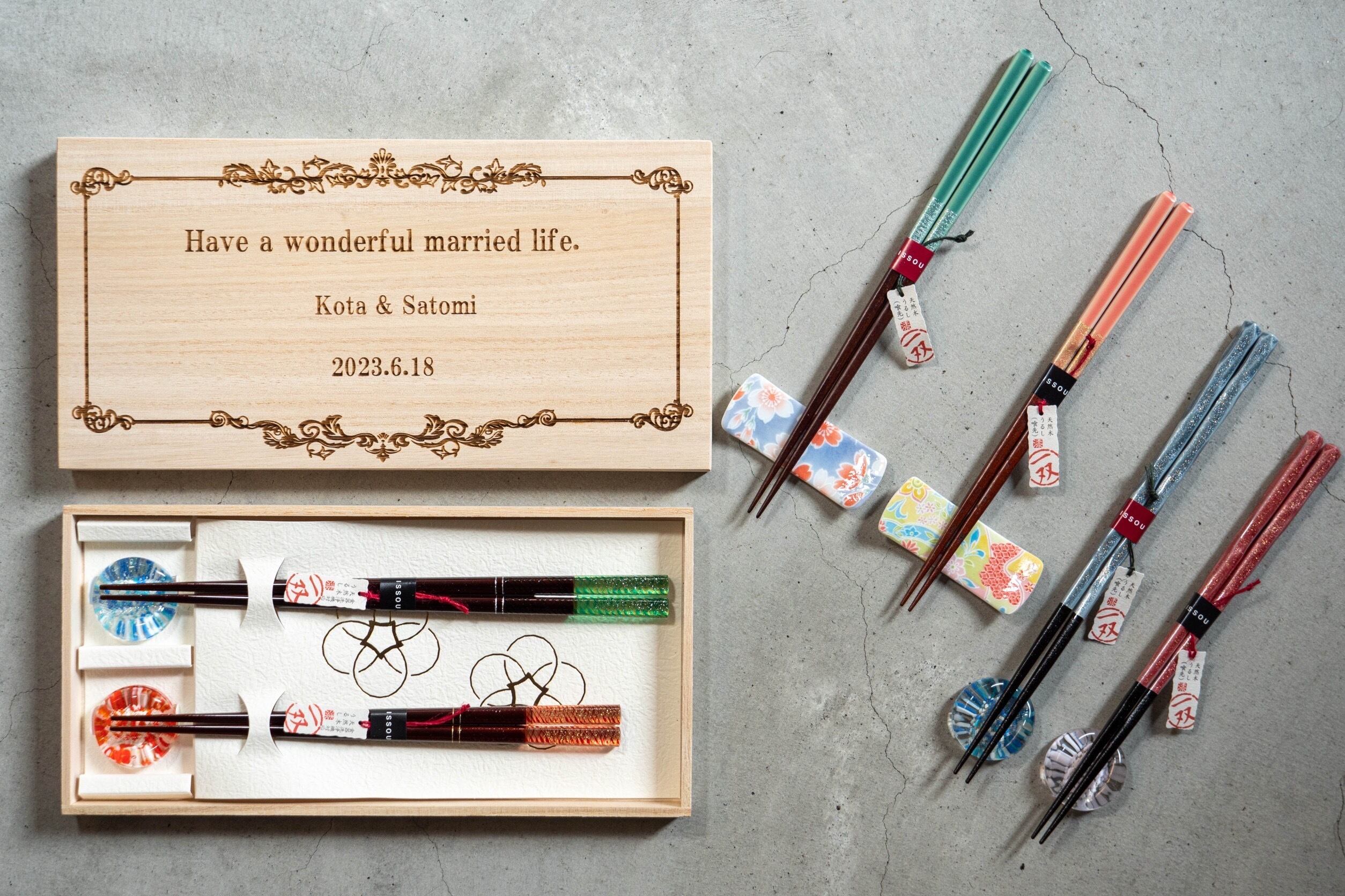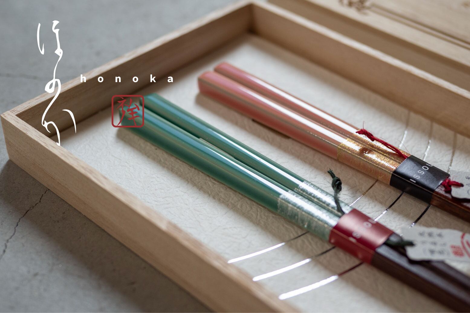 「ほのか」は、箸置きが付属する夫婦箸です。桐箱にも彫刻が入るので、贈り物にも最適です。価格もお手頃なので、母の日や父の日、結婚祝い、お誕生日プレゼントや敬老の日など、様々な場面で使えます。