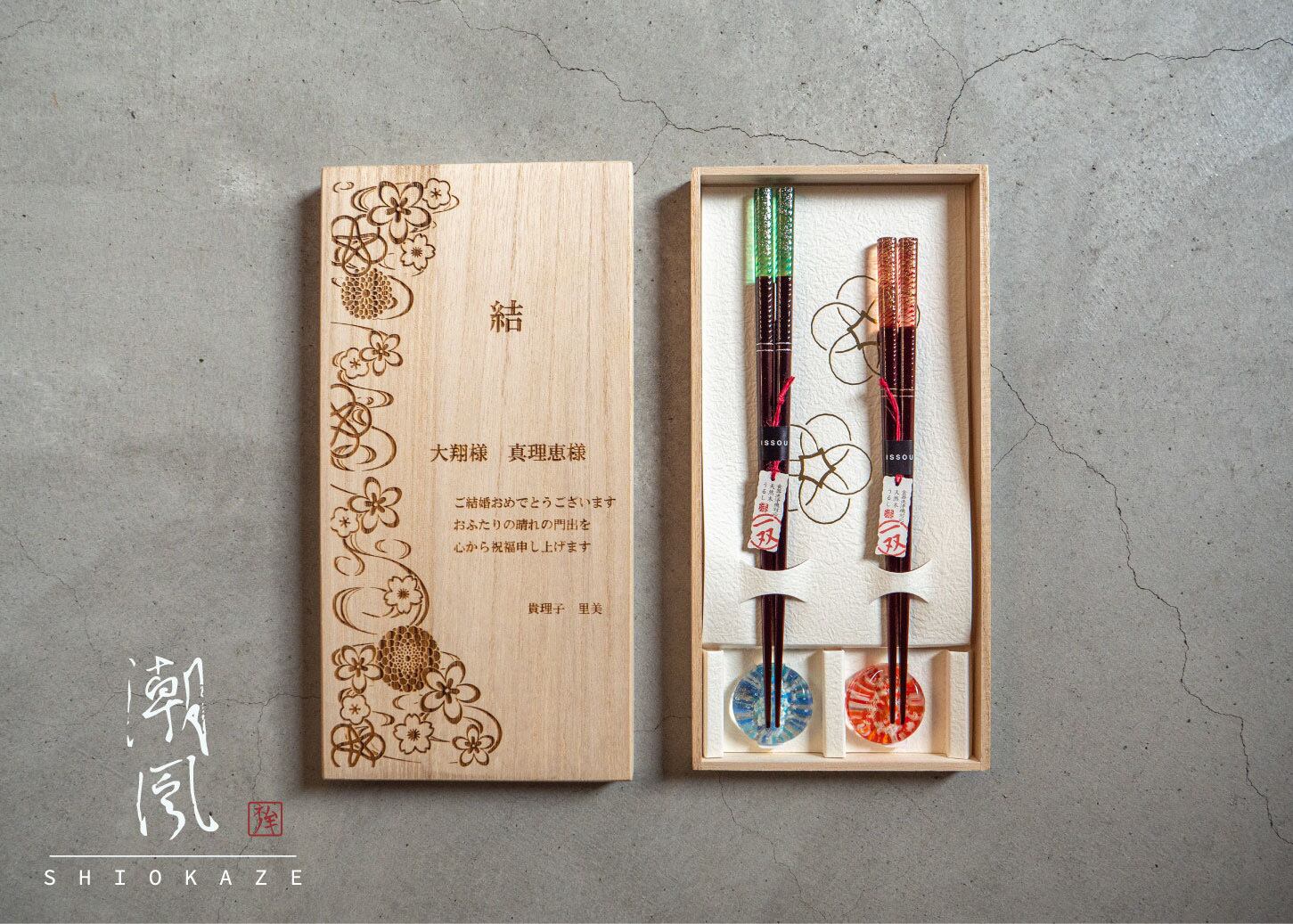 ※彫刻の仕上がりは、すべて手作業で行われるため、若干の個体差がございます。また、自然素材のうえ、塗装仕上げとなる箸については、木目や色合いに多少のばらつきが見られる場合がございます。予めご了承ください。